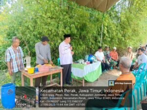 Perak, Jombang – Kepala Dinas Pertanian Kabupaten Jombang, Ir. Much Rony, MM, melakukan kunjungan kerja ke Desa Perak, Kecamatan Perak, pada Rabu (27/8/2025). Kunjungan ini bertujuan untuk memantau langsung proses pembuatan Pupuk Organik Cair ( POC ) Biometa yang dibuat oleh petani desa Perak,serta tentang pendataan Rencana Definitif Kebutuhan Kelompok (RDKK) yang menjadi syarat utama bagi petani untuk mendapatkan pupuk bersubsidi pada tahun 2026 mendatang.