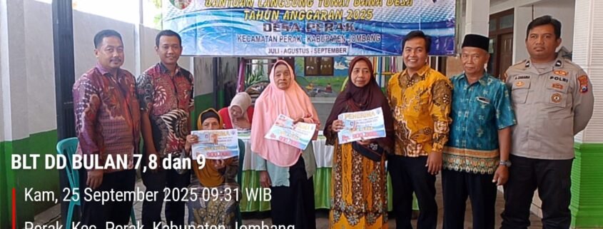 Pada hari ini Kamis tanggal 25 September 2025, Pemerintah Desa Perak kembali menyalurkan Bantuan Langsung Tunai Dana Desa (BLT-DD) Tahap 7,8,9 Tahun Anggaran 2025 kepada warga yang berhak menerima, sebagai bentuk komitmen dalam mendukung kesejahteraan masyarakat, khususnya bagi keluarga yang tergolong kurang mampu.